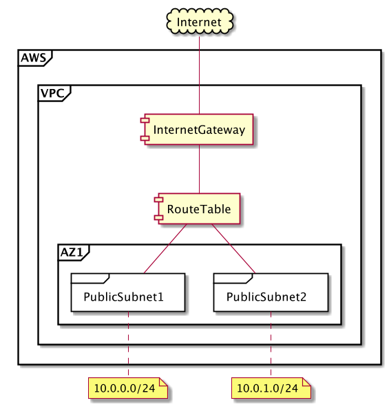 - 1つのアベイラビリティゾーンに2つのパブリックサブネット