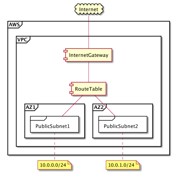 - 2つのアベイラビリティゾーンに2つのパブリックサブネット