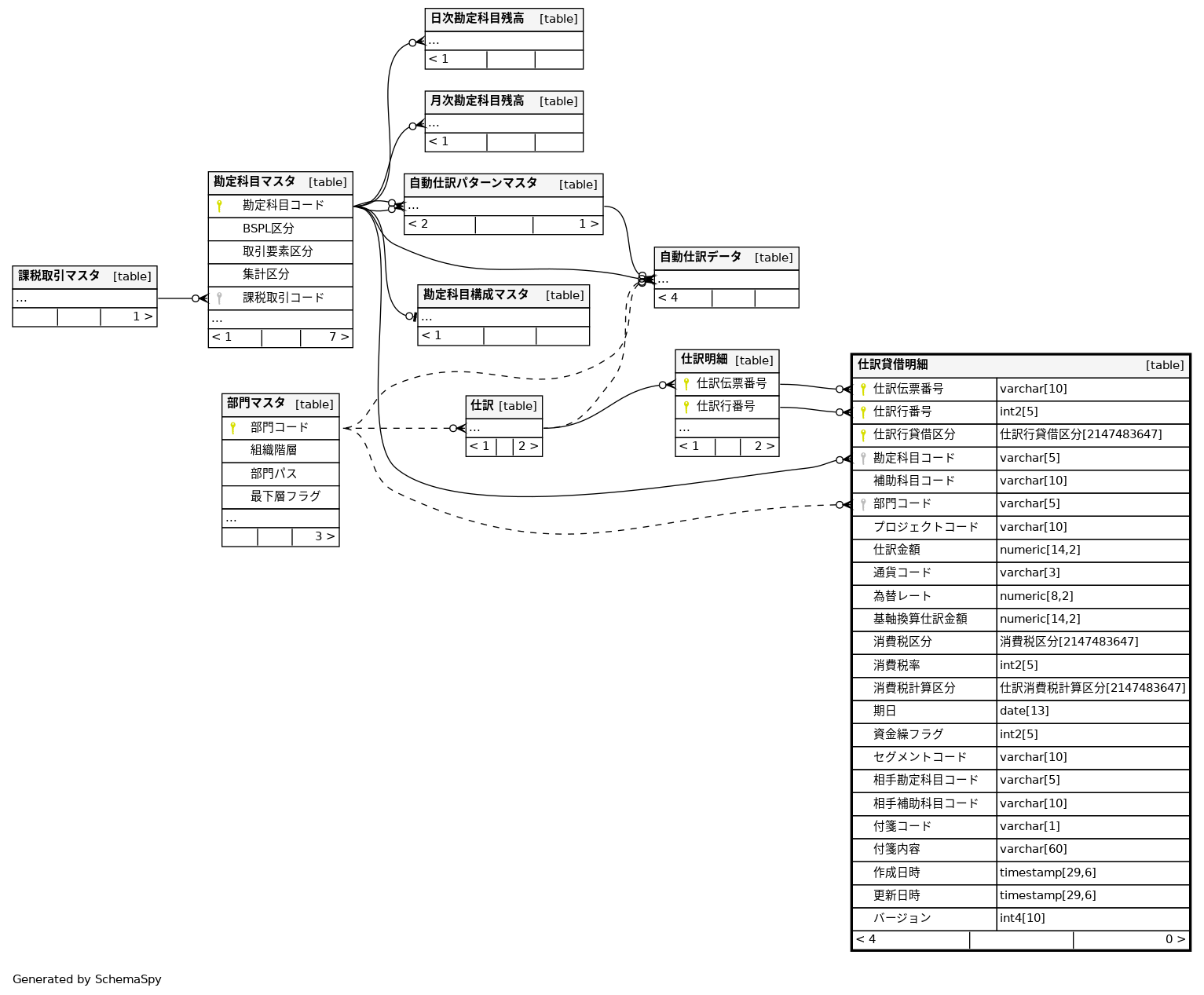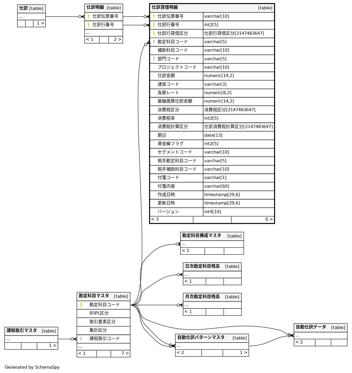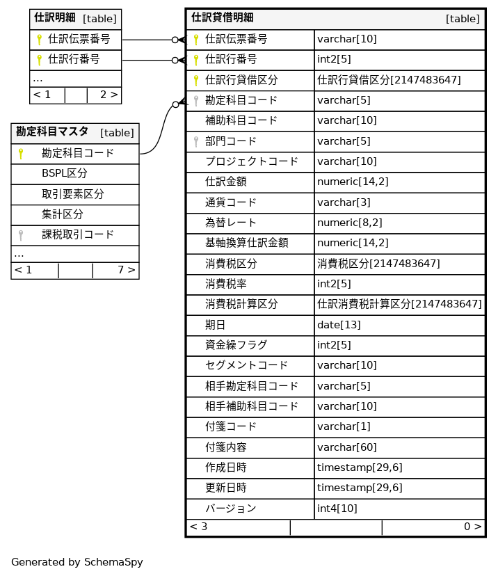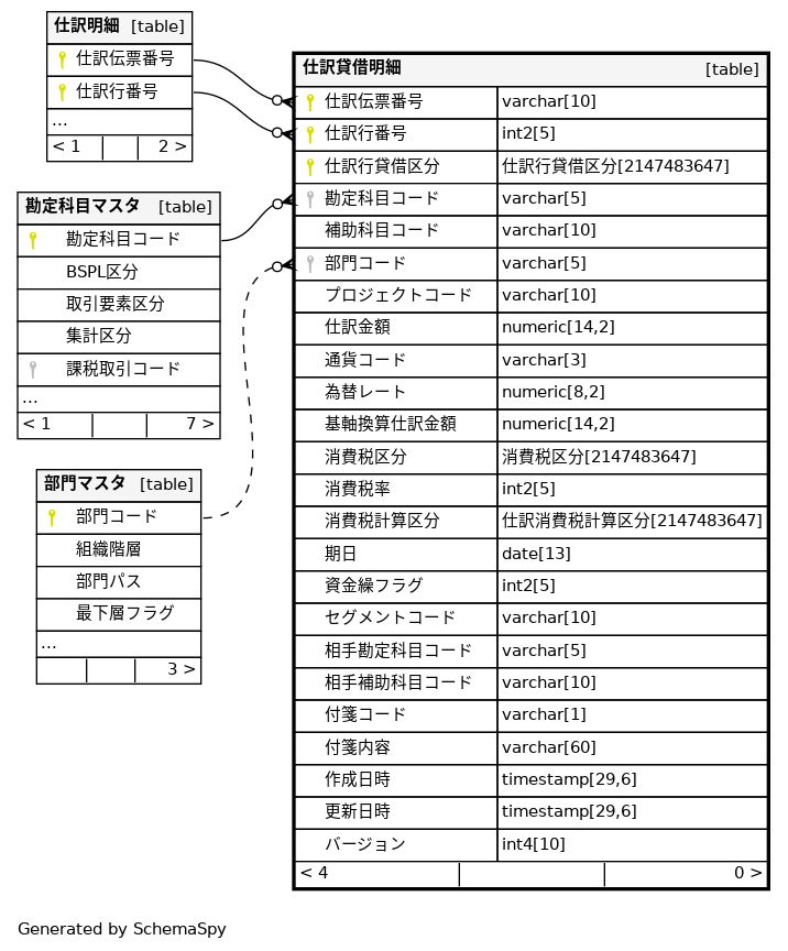 | 仕訳貸借明細_pkey | Primary key | Asc/Asc/Asc | 仕訳伝票番号 + 仕訳行番号 + 仕訳行貸借区分 |