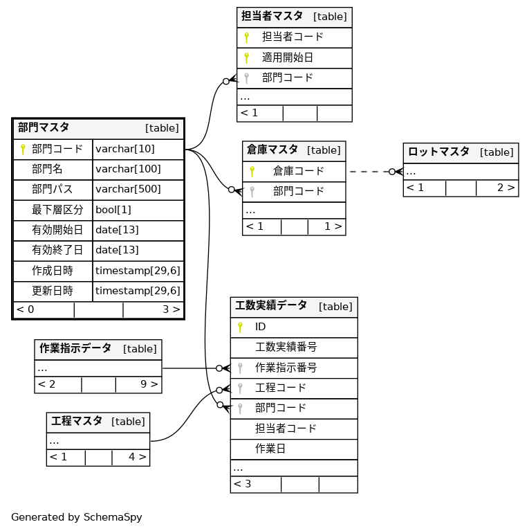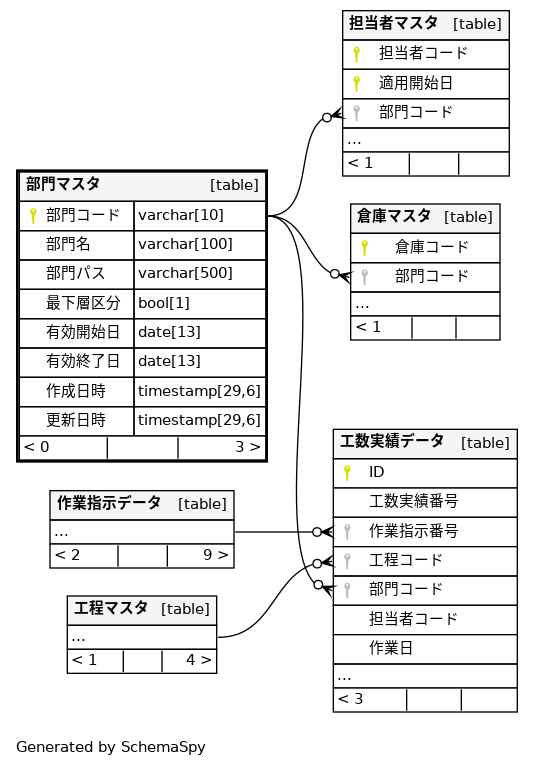 | 部門マスタ_pkey | Primary key | Asc | 部門コード |