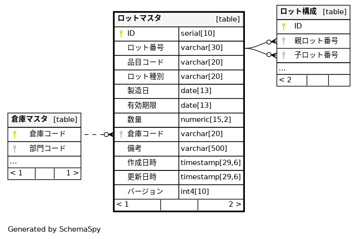 | ロットマスタ_ロット番号_key | Must be unique | Asc | ロット番号 |