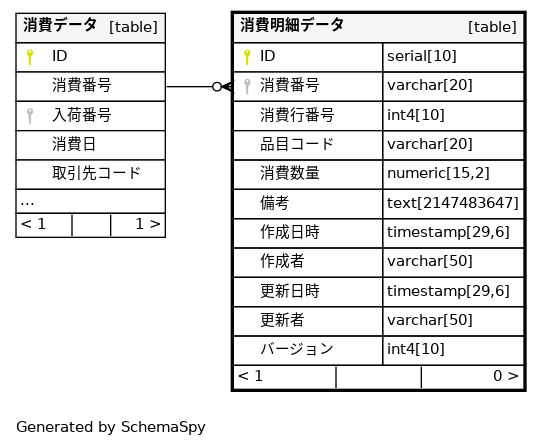 | 消費明細データ_消費番号_消費行番号_key | Must be unique | Asc/Asc | 消費番号 + 消費行番号 |