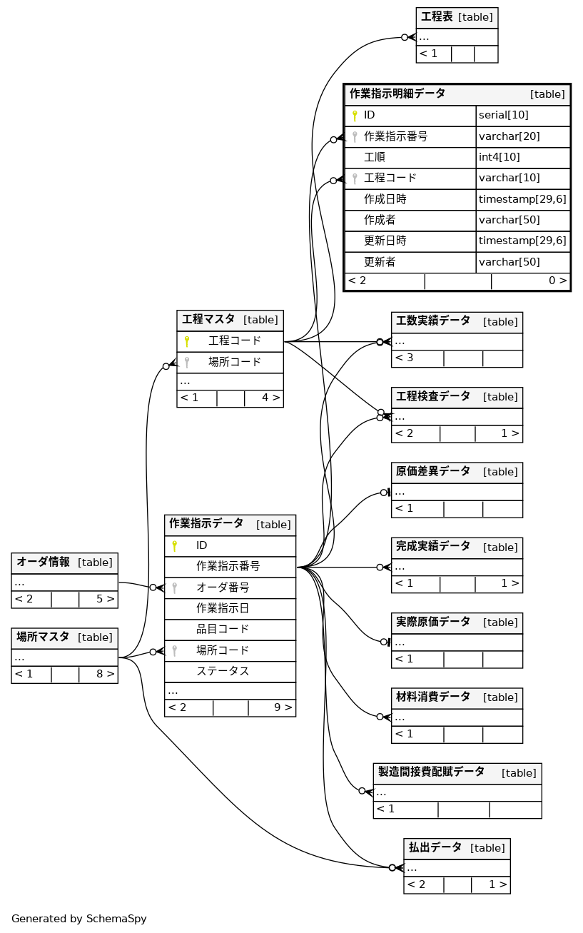 | 作業指示明細データ_作業指示番号_工順_key | Must be unique | Asc/Asc | 作業指示番号 + 工順 |