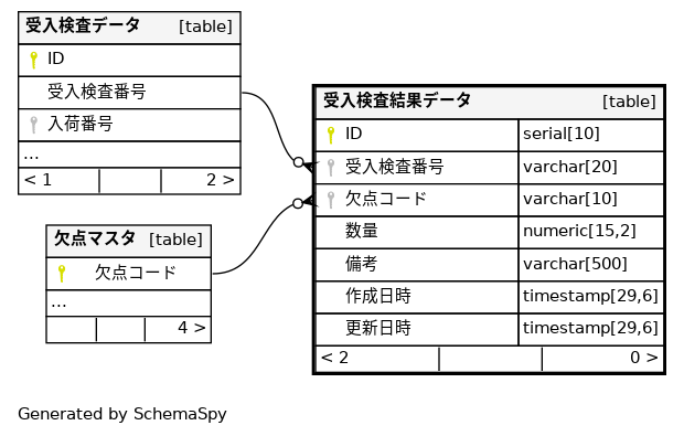 | uk_受入検査結果 | Must be unique | Asc/Asc | 受入検査番号 + 欠点コード |