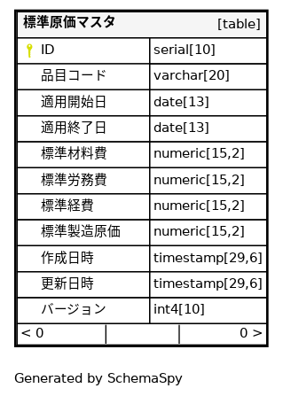 | ID | serial | 10 | √ | nextval('"標準原価マスタ_ID_seq"'::regclass) |