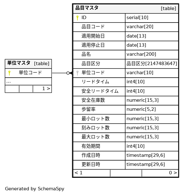 | ID | serial | 10 | √ | nextval('"品目マスタ_ID_seq"'::regclass) |