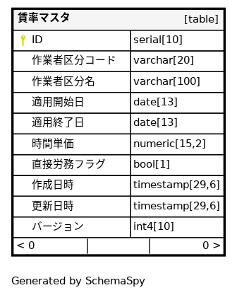 | ID | serial | 10 | √ | nextval('"賃率マスタ_ID_seq"'::regclass) |