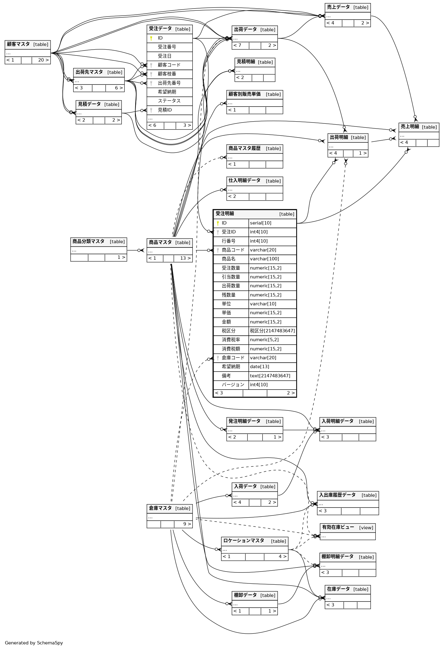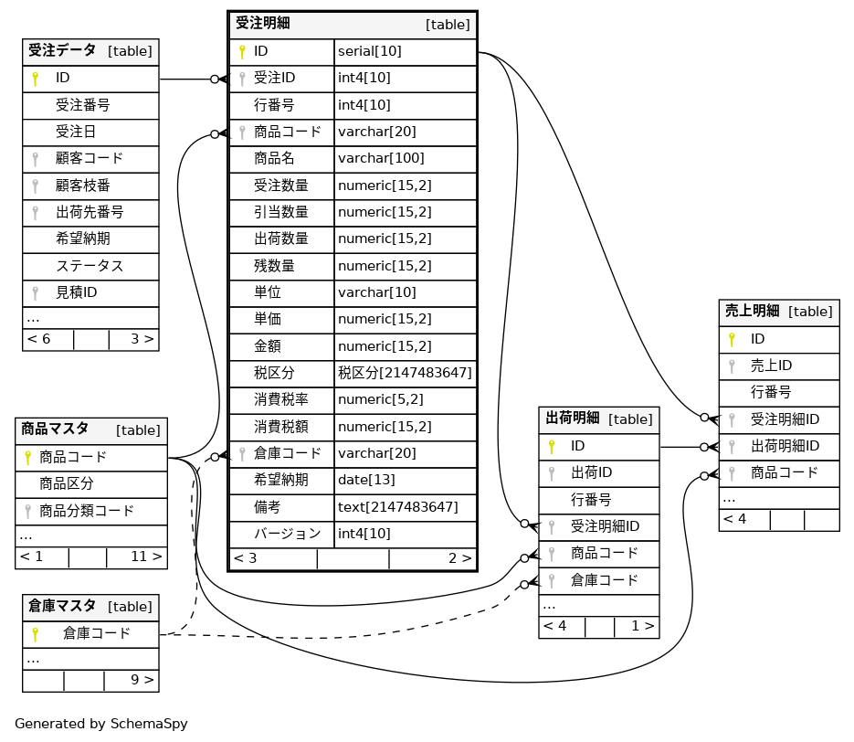 | ID | serial | 10 | √ | nextval('"受注明細_ID_seq"'::regclass) |