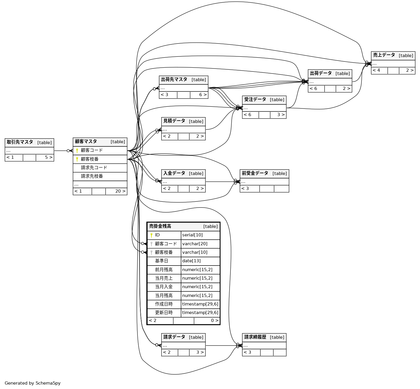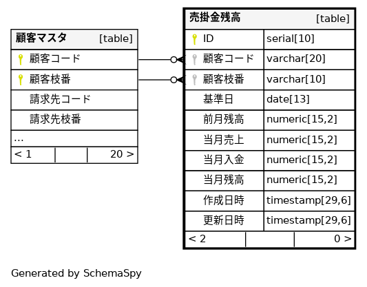 | uk_売掛金残高_顧客_基準日 | Must be unique | Asc/Asc/Asc | 顧客コード + 顧客枝番 + 基準日 |