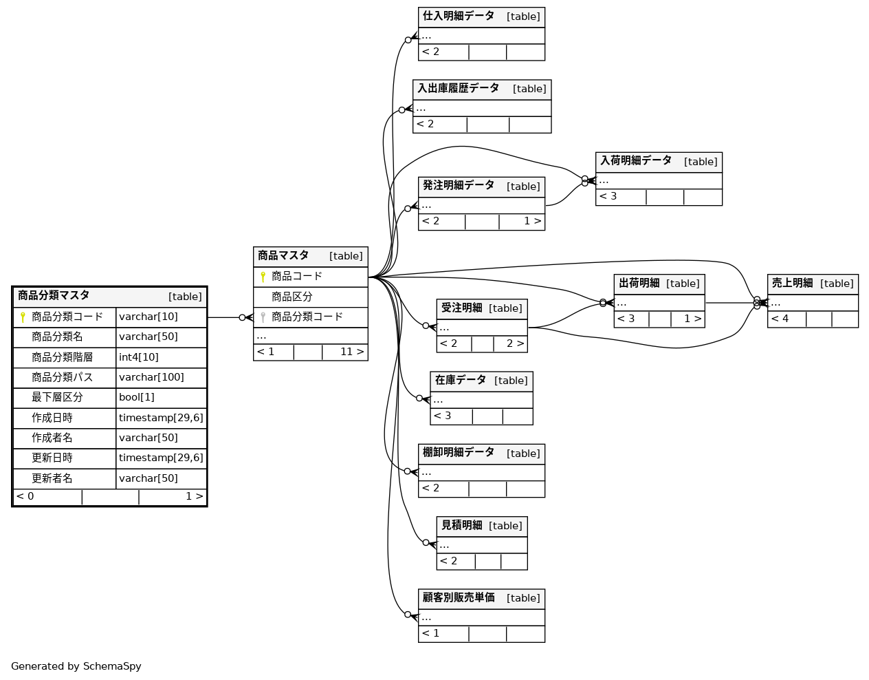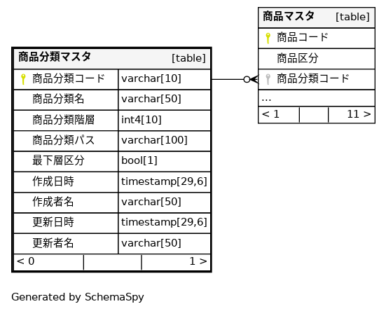| 商品分類マスタ_pkey | Primary key | Asc | 商品分類コード |