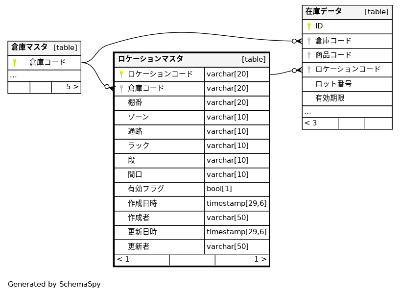 | ロケーションマスタ_pkey | Primary key | Asc | ロケーションコード |