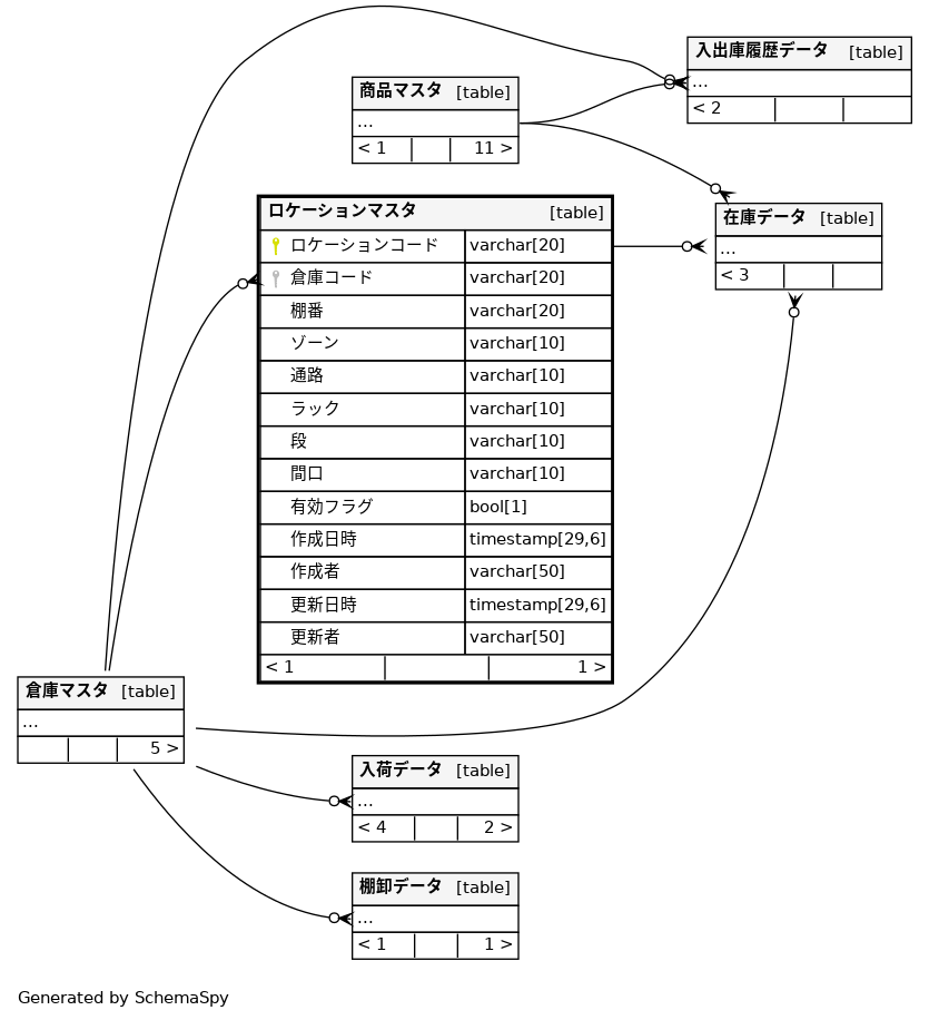 | ロケーションマスタ_倉庫コード_棚番_key | Must be unique | Asc/Asc | 倉庫コード + 棚番 |