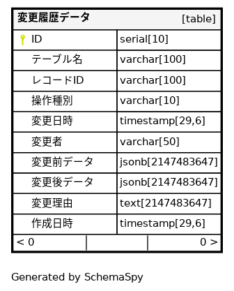| ID | serial | 10 | √ | nextval('"変更履歴データ_ID_seq"'::regclass) |