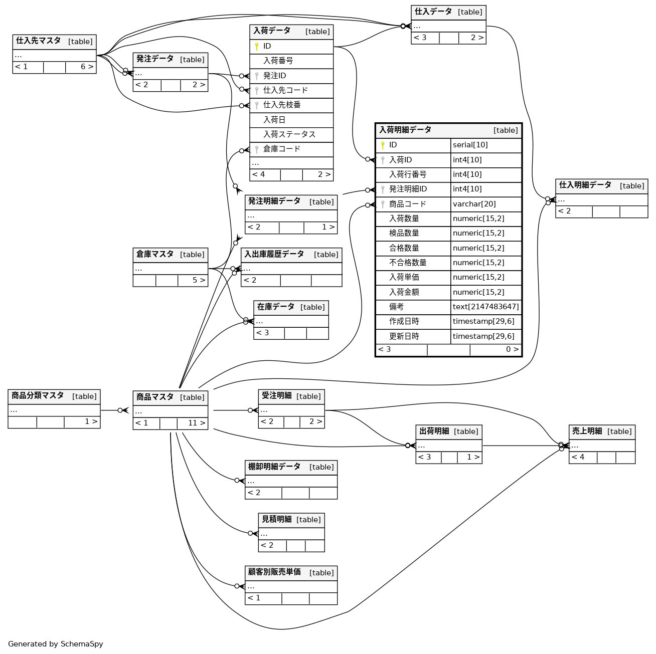 | 入荷明細データ_pkey | Primary key | Asc | ID |