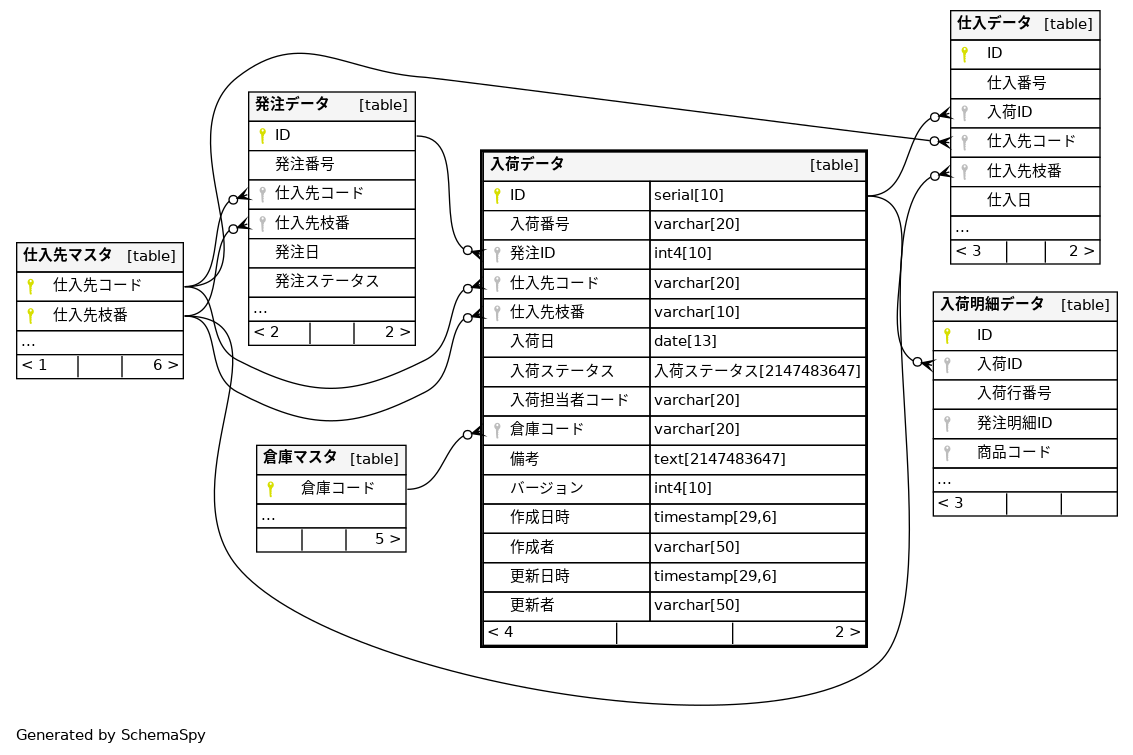 | 入荷データ_pkey | Primary key | Asc | ID |