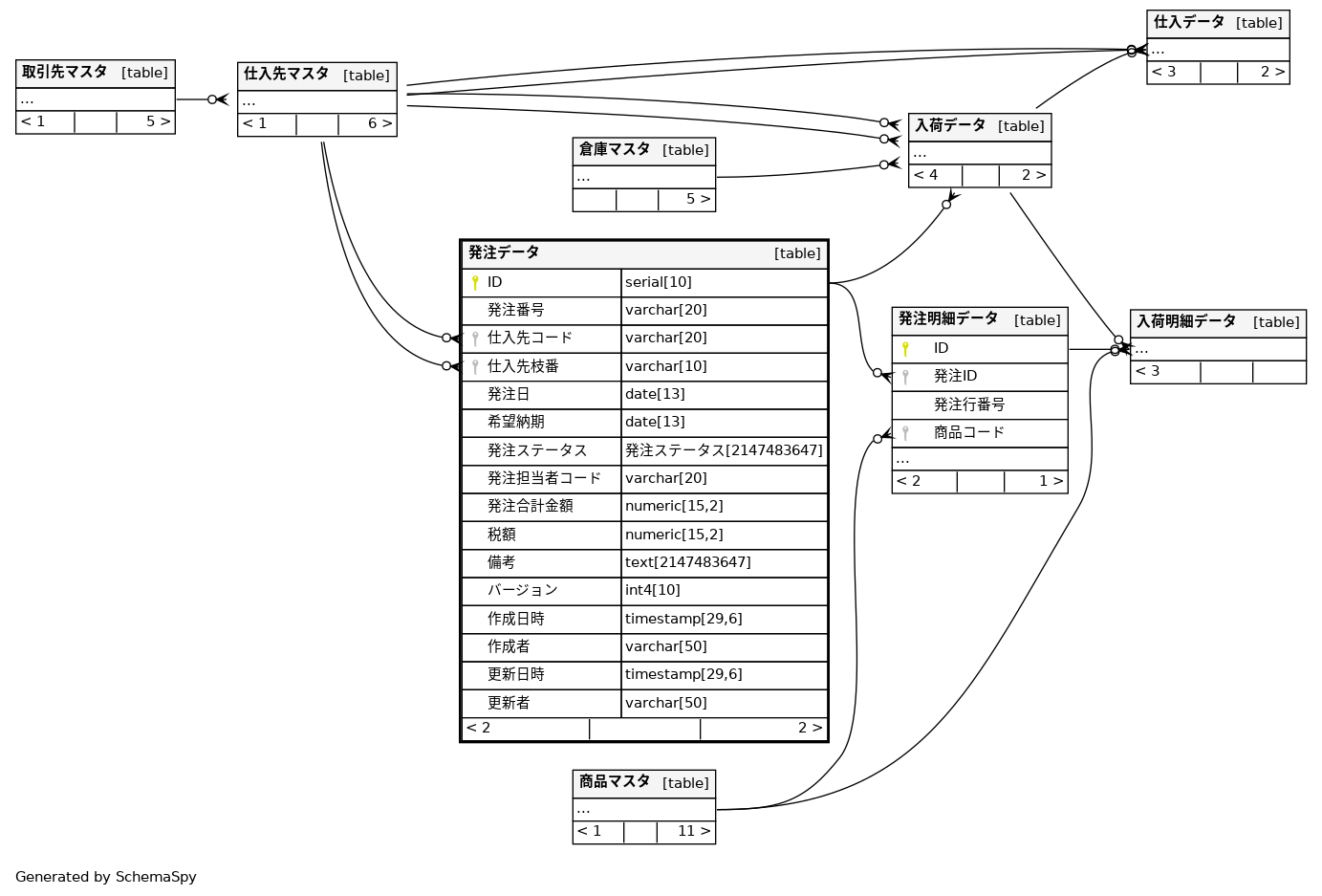 | 発注データ_発注番号_key | Must be unique | Asc | 発注番号 |