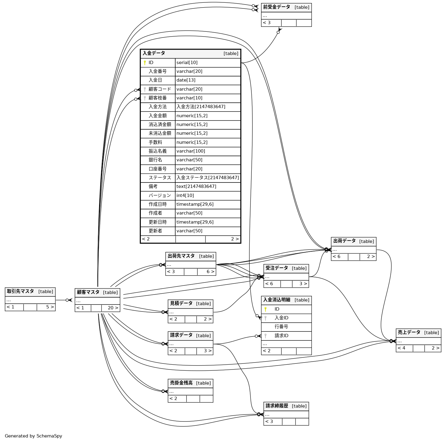 | 入金金額 | numeric | 15,2 | null |