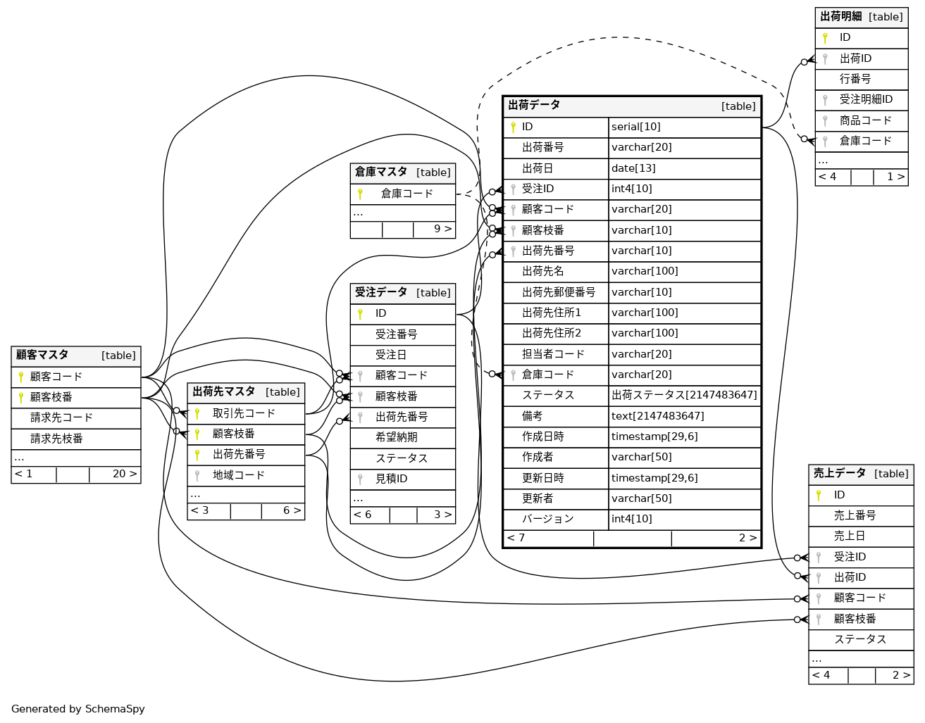 | 出荷データ_出荷番号_key | Must be unique | Asc | 出荷番号 |